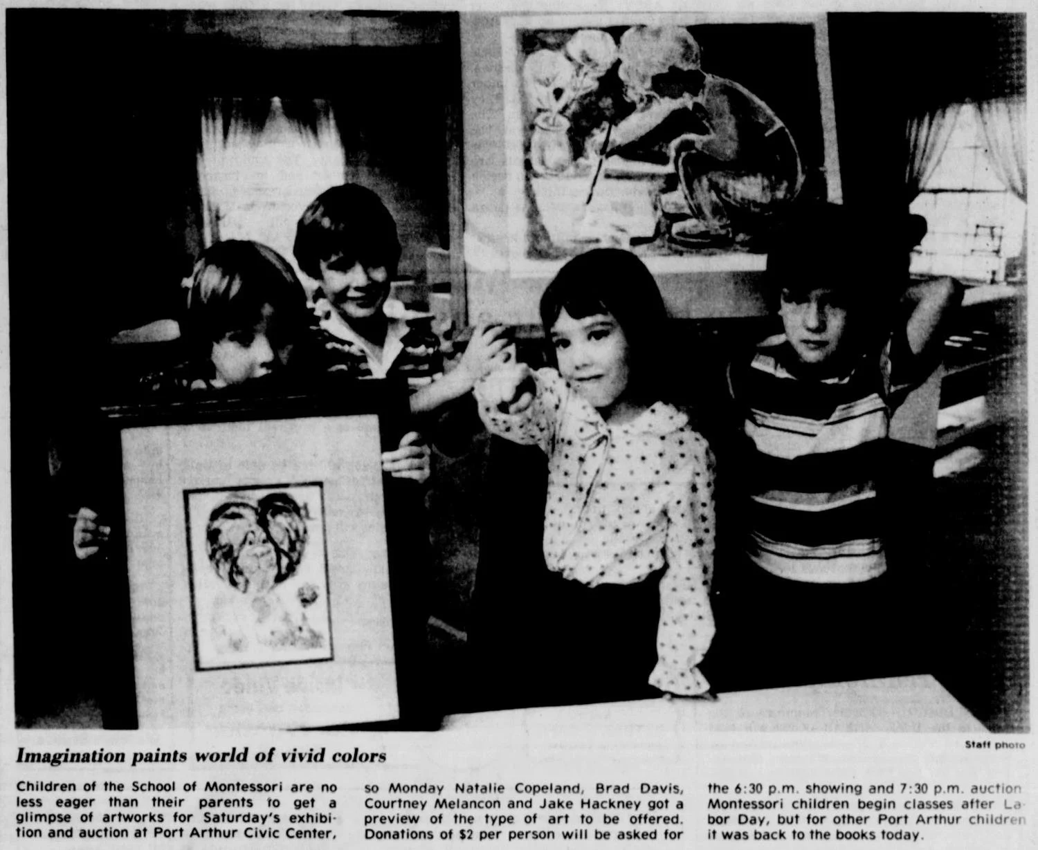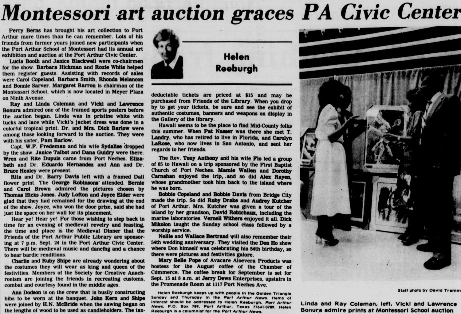 From 1979 to 1983 and again in 1991, the school organised an annual art exhibition and auction to raise money for the School. The articles below are from The News, Port Arthur, Texas, August 24, 1982, August 28th, 1983 and September 4th, 1983.